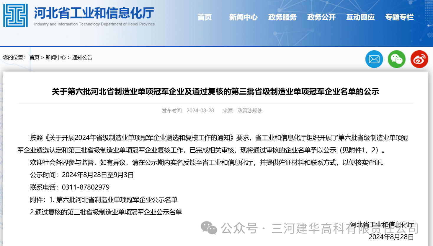 喜報 | 建華高科公司榮獲省級制造業(yè)單項冠軍企業(yè)